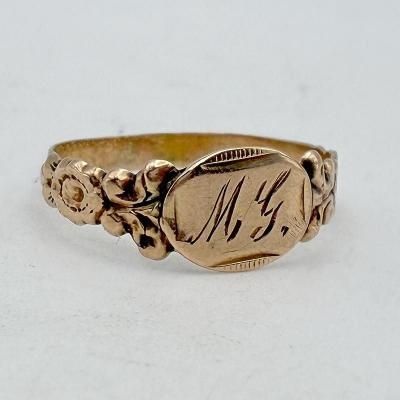 "MG" 14K GOLD SIGNET RING / 16号 *250926F*