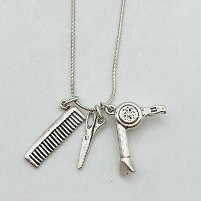 "SCISSORS, COMB and HAIR DRYER" 925 SILVER CHARM TOP w/Chain *251008F*