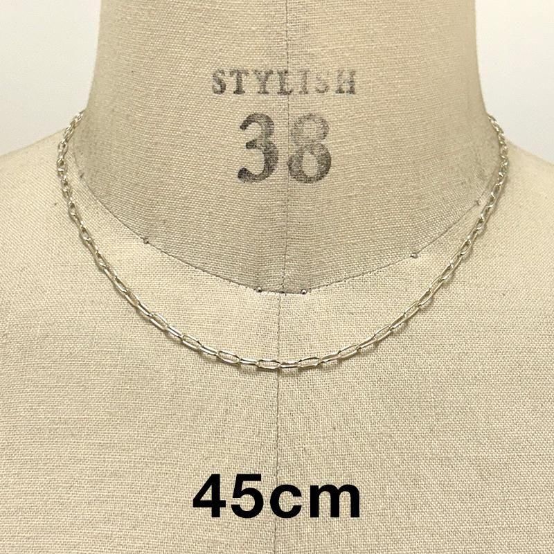チェーンは長小豆のデザインで小振りのヴィンテージのチャームトップとも相性のよいデザインです。また酸化防止のないシルバーです。経年変化で黒っぽく変色しますのでヴィンテージのトップにも馴染んできます。クリーニング磨きを行うと光沢のある元の色目に戻ります。