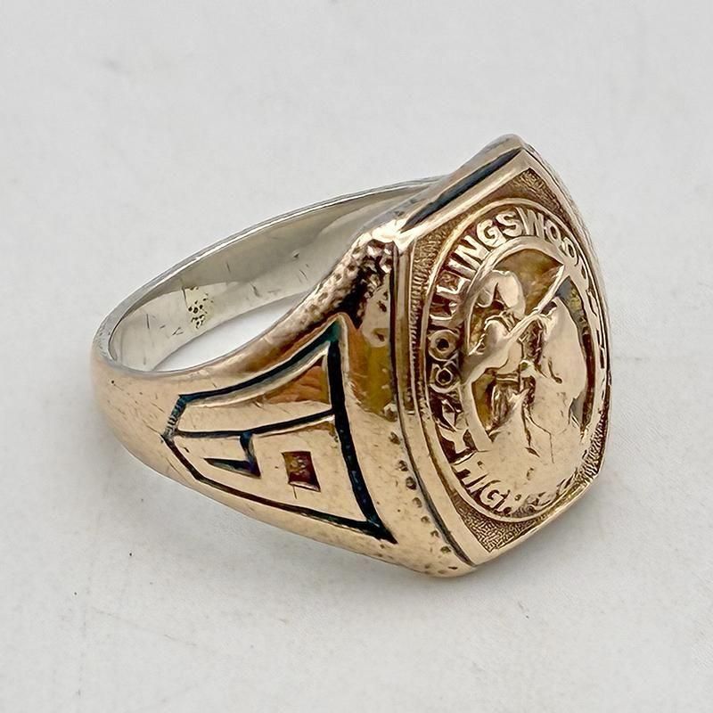 しっかりと金が残ったビンテージクラスリング、騎馬のマークもカッコいいです。