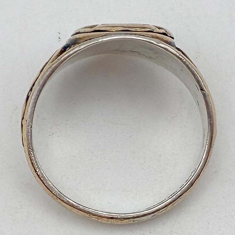 サイドデザインが上品な金張りリング。地金がシルバーですので金がすり減っても良い味になってきます。