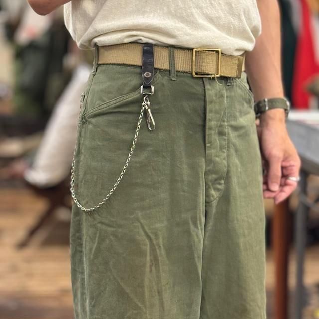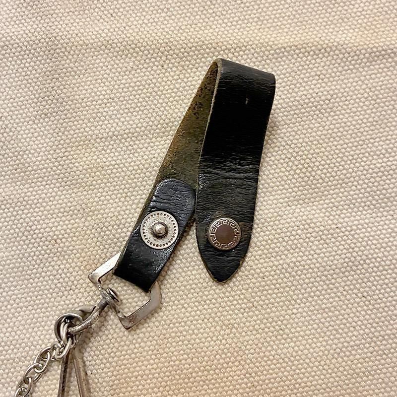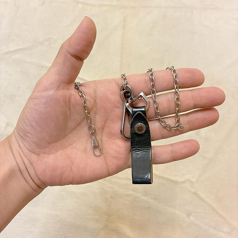 アメリカで買い付けたヴィンテージのレザーストラップ付キーホルダーにオールドのデッドストックチェーンを付けたウォレットチェーンです。