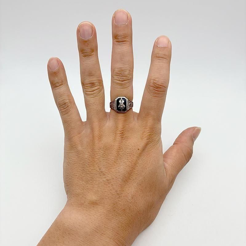 オニキスがシックな印象を与えるビンテージクラスリング。