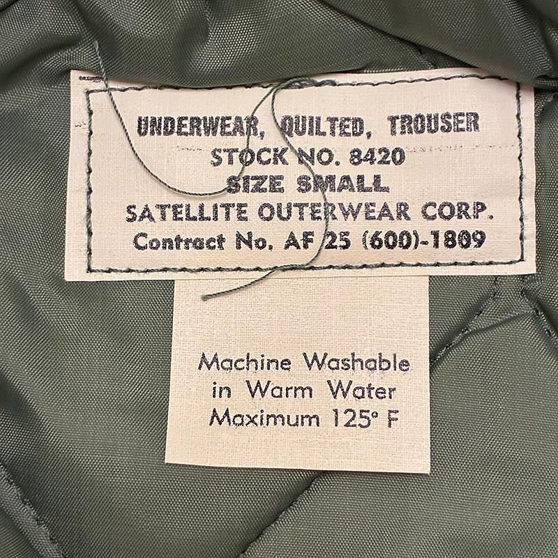 1960年前期頃のCWU-9/P キルティングライナーの上下セット、デッドストックです。