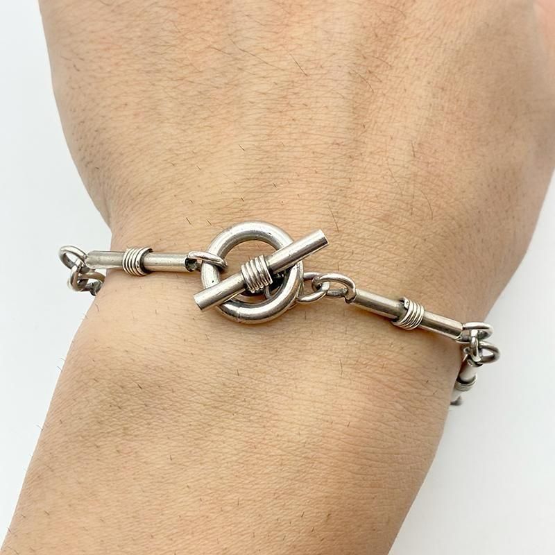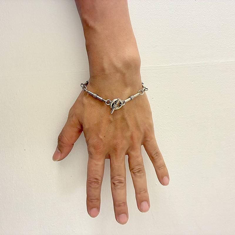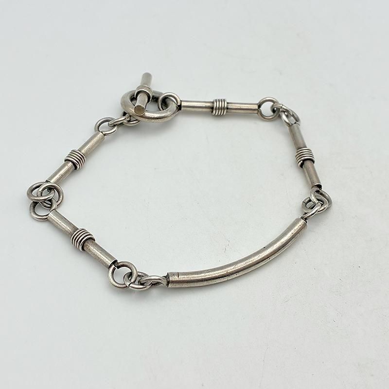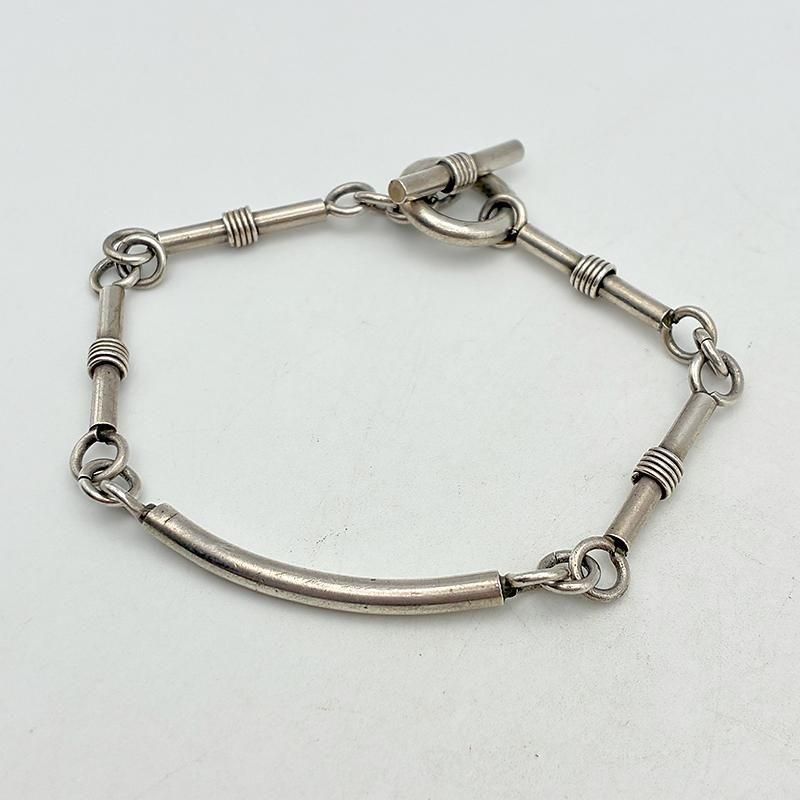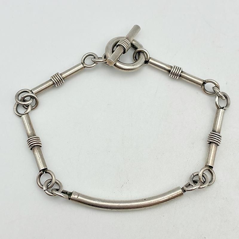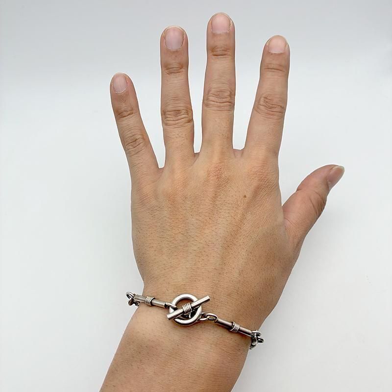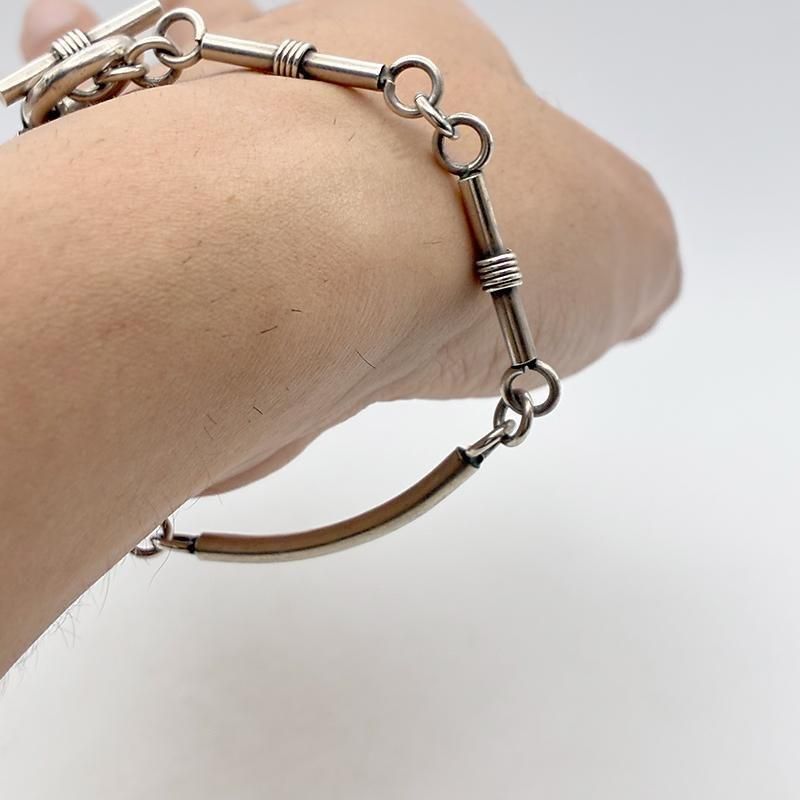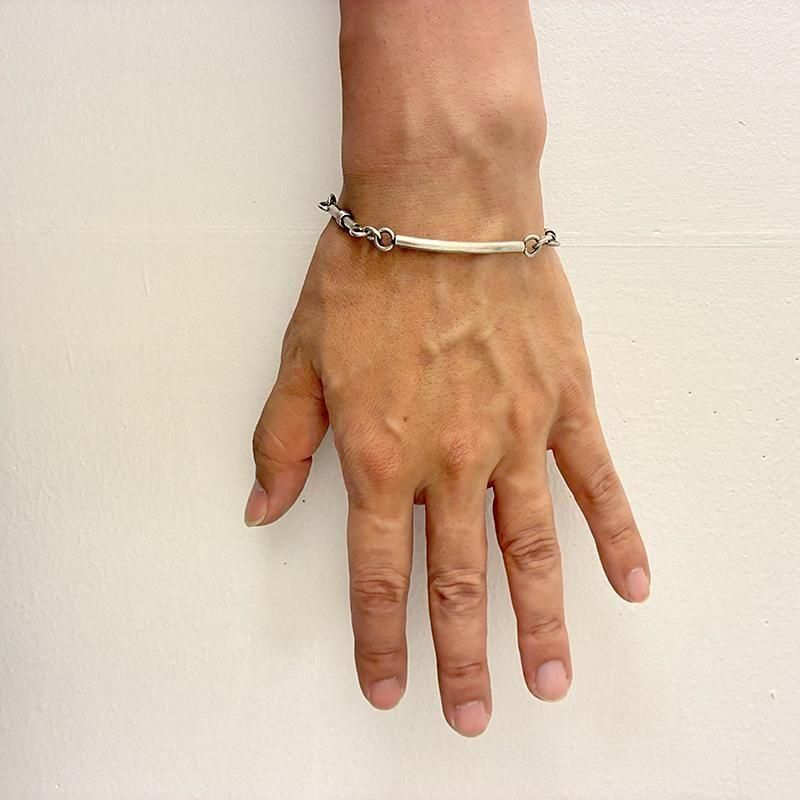 筒のデザインリングが繋がったデザイン、中央のバーだけ装飾のがなく長めです。