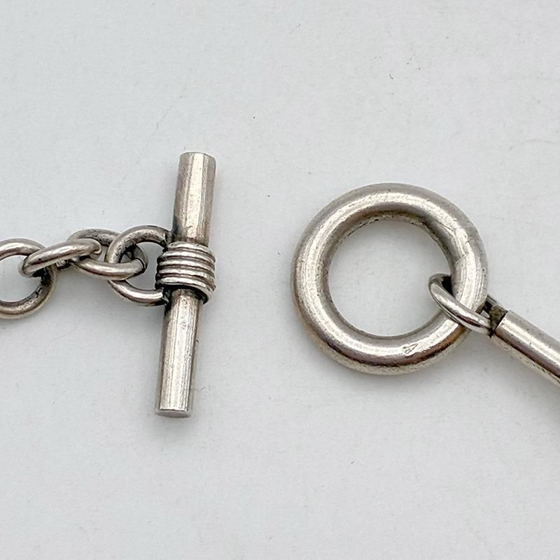 留め金具はポイントになるトグル式、その日の気分でトグルの位置を変えてもいいかと思います。
