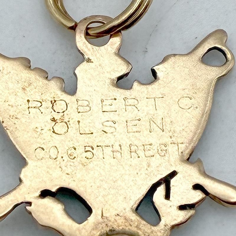 裏面にはネーム "ROBERT C. OLSEN" と所属部隊 "CO. C 5TH REGT." の彫刻が入っています。