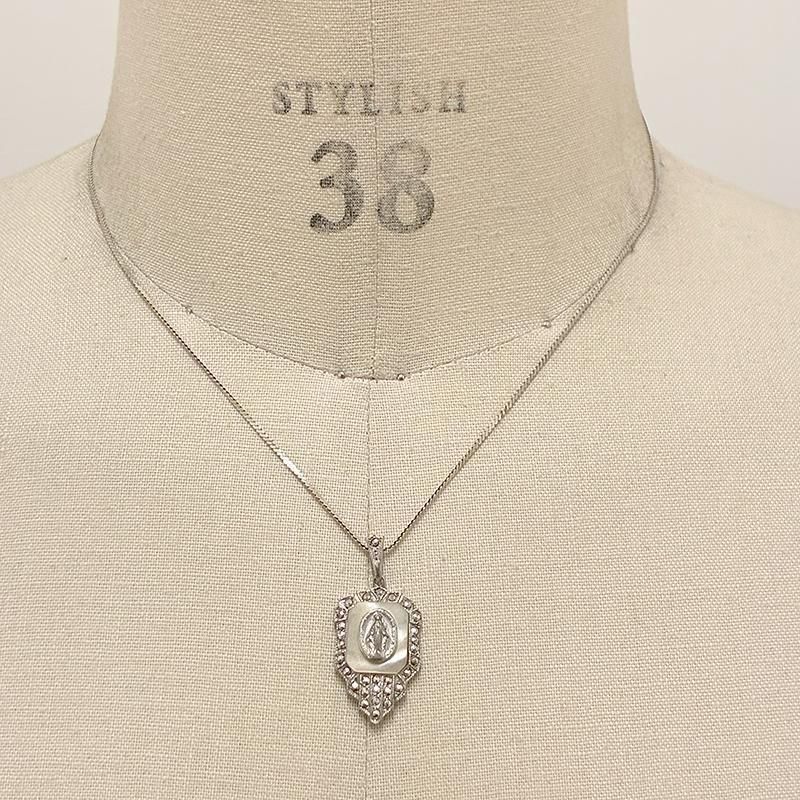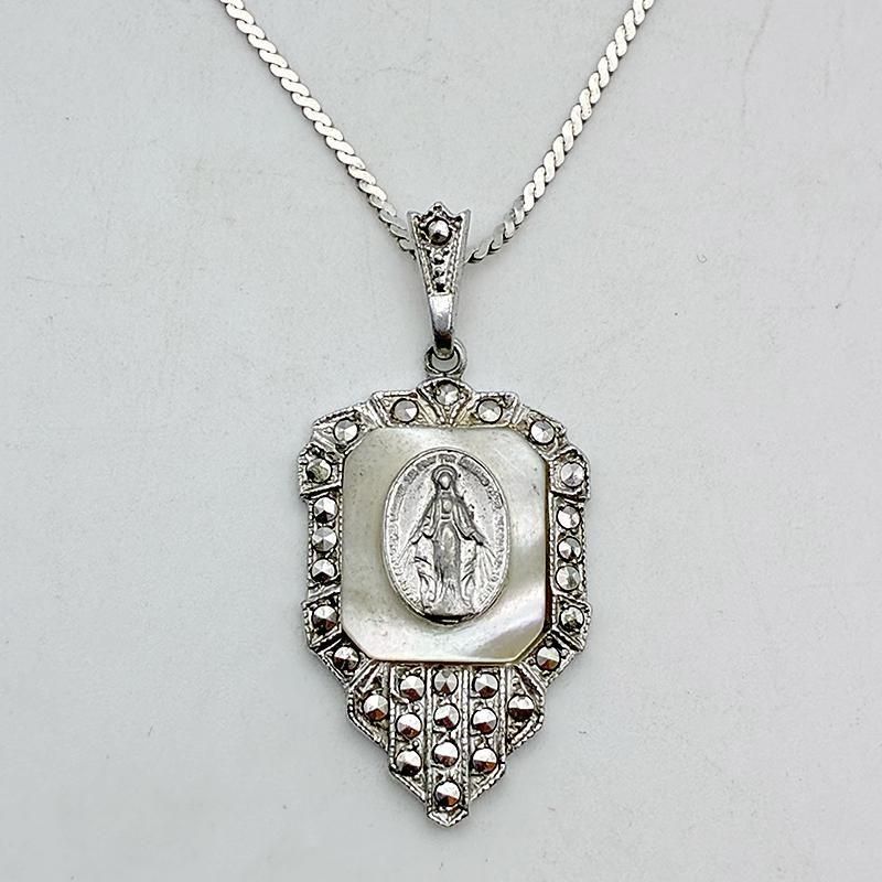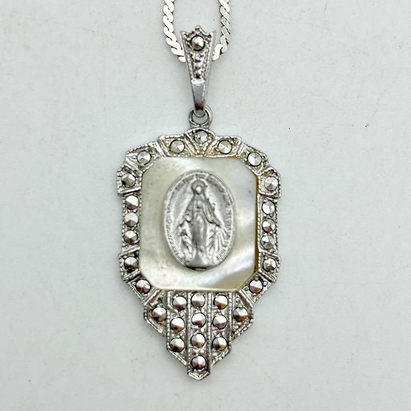 トップはゴージャスなバックに白蝶貝、聖母マリアがデザインされています。