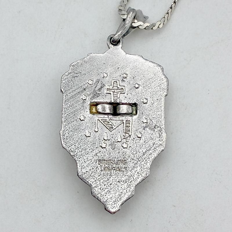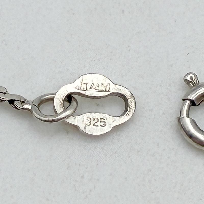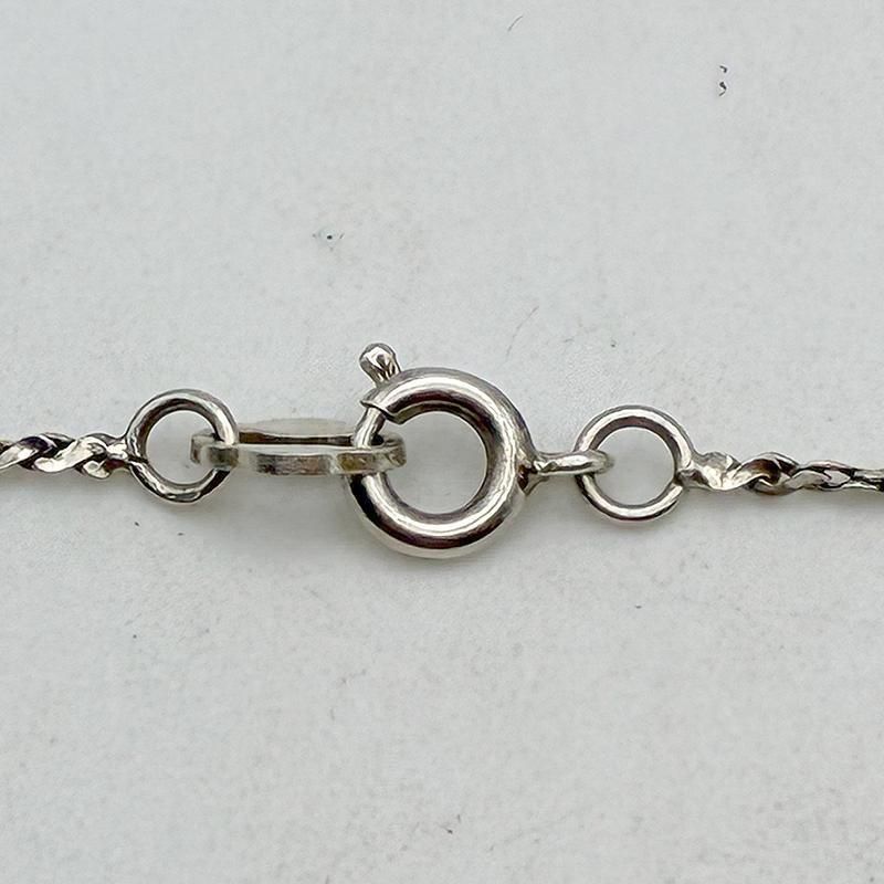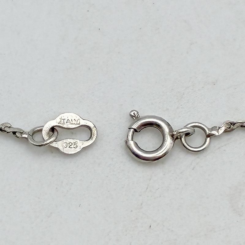 チェーンはロープチェーンのデザイン、留め具は丸引き式、STERLING刻印入り。