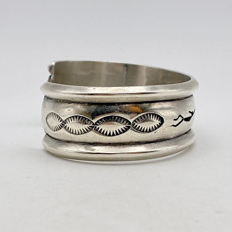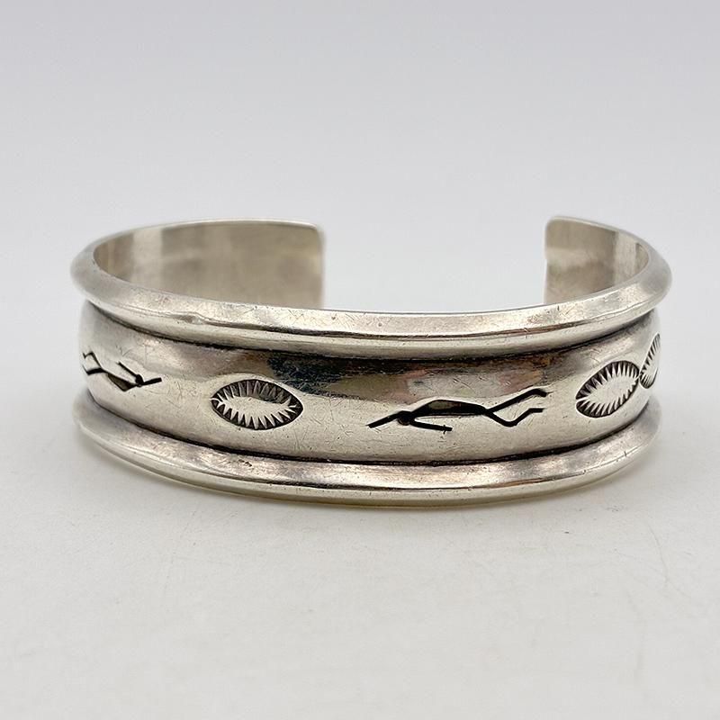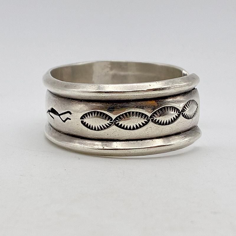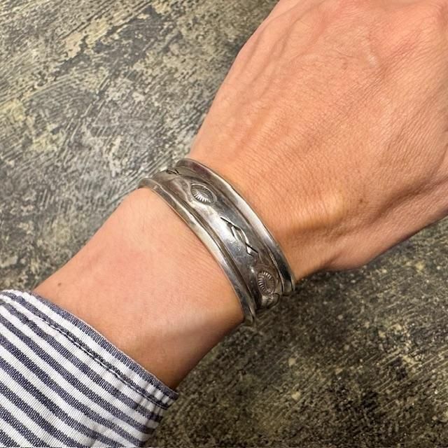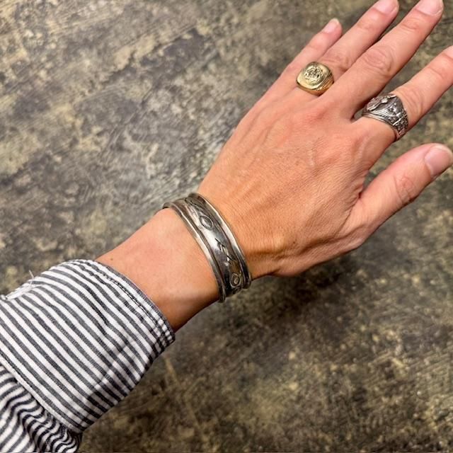 縦幅、重量があり存在感があり、ココペリのスタンプが印象的なバングルです。