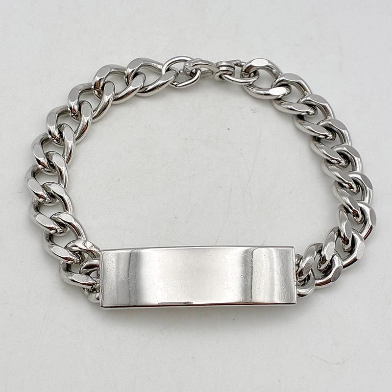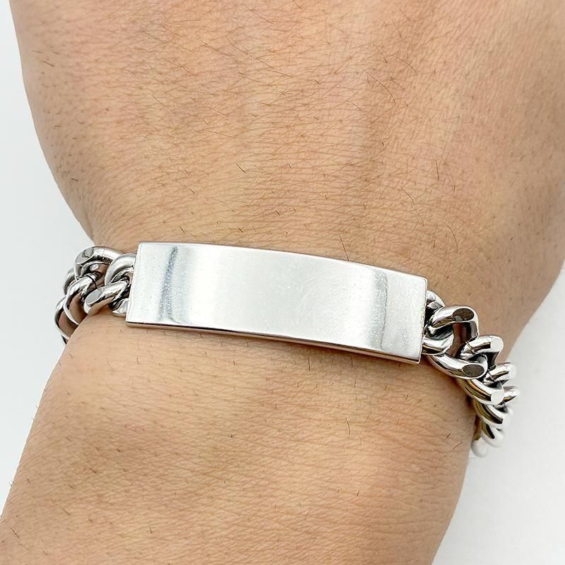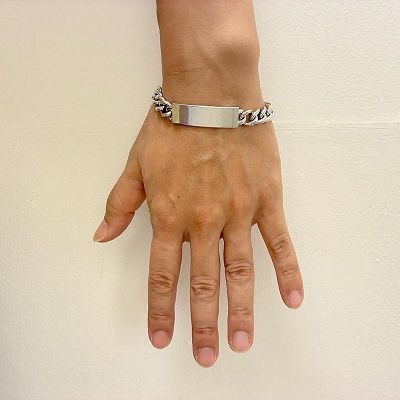 スクエア型のプレートに喜平チェーンがセットされたブレスレットです。