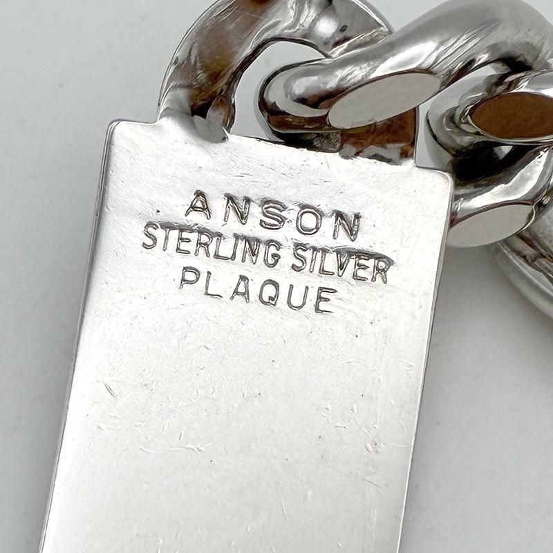 プレート裏面にSTERLING SILVER PLAQUE(銀メッキ) とメーカー ANSON の刻印があります。