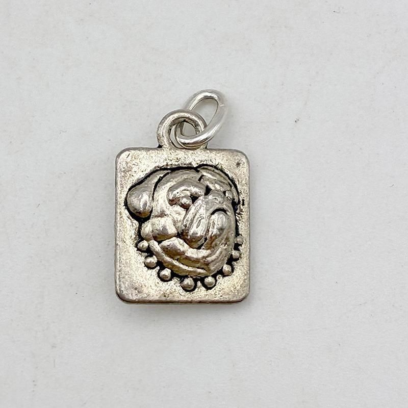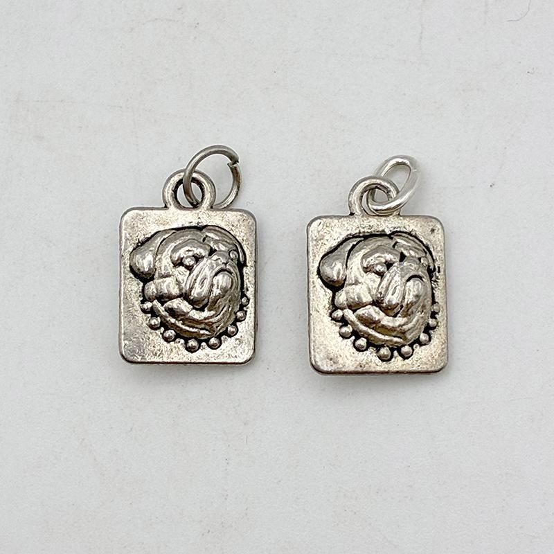 四角いプレートお表裏に立体ブルドックの顔のデザイン。
