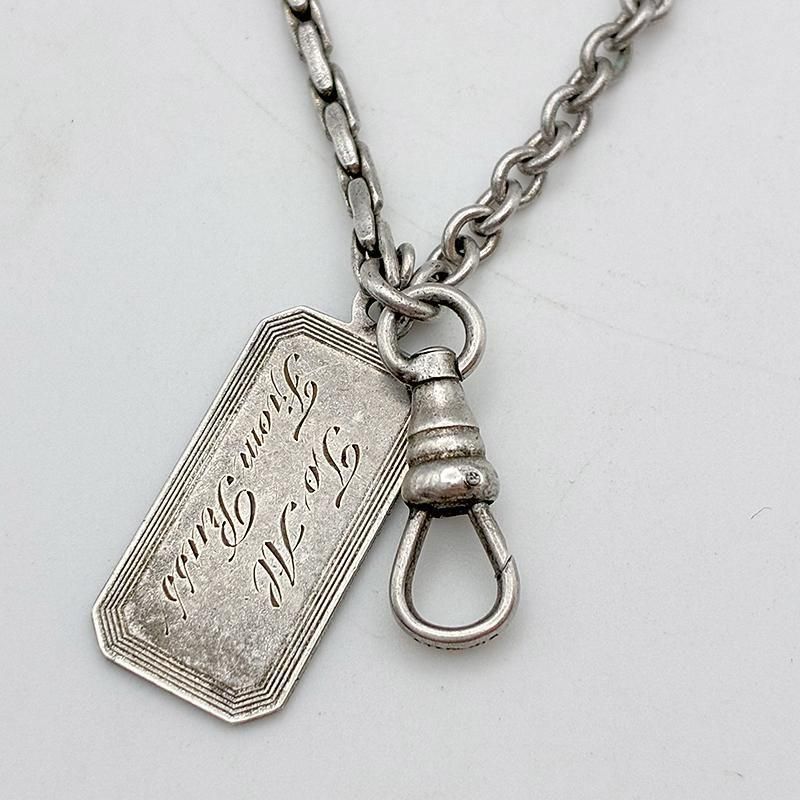 チェーン先にはプレート、"To Al From Rubbi" の彫刻が入っています、裏面にSTERLING刻印。