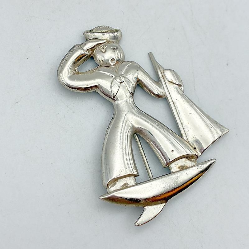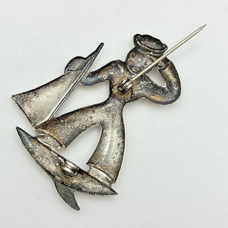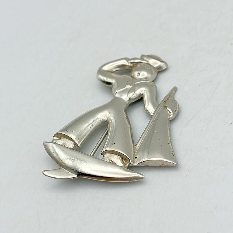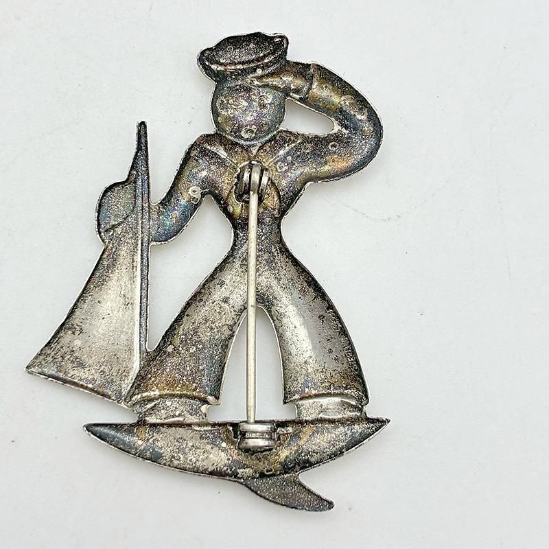 ヨットの上で敬礼のポージングした少しポップな水兵さんのピンズ。
