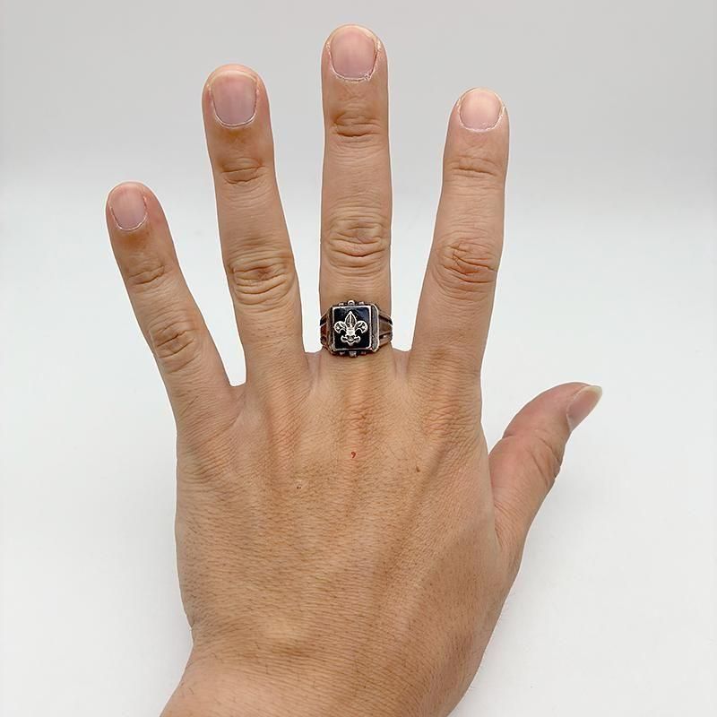 トップはオニキスベースにボーイスカウトのエンブレムデザイン。