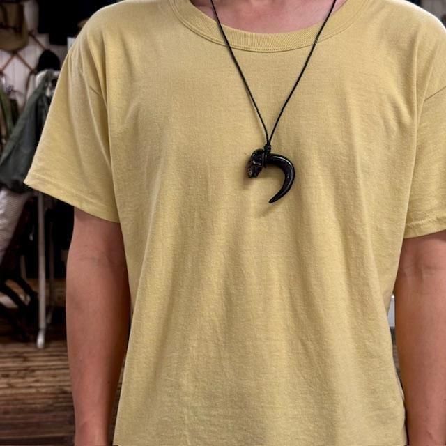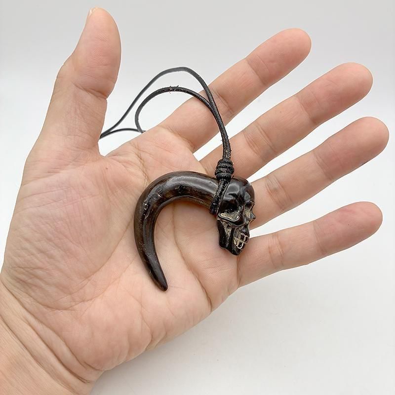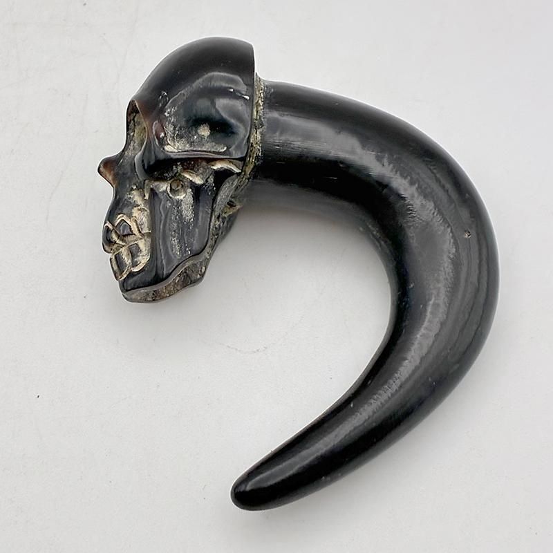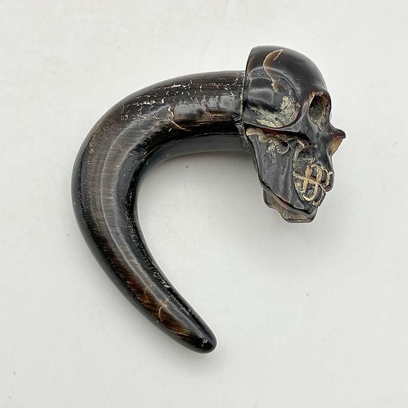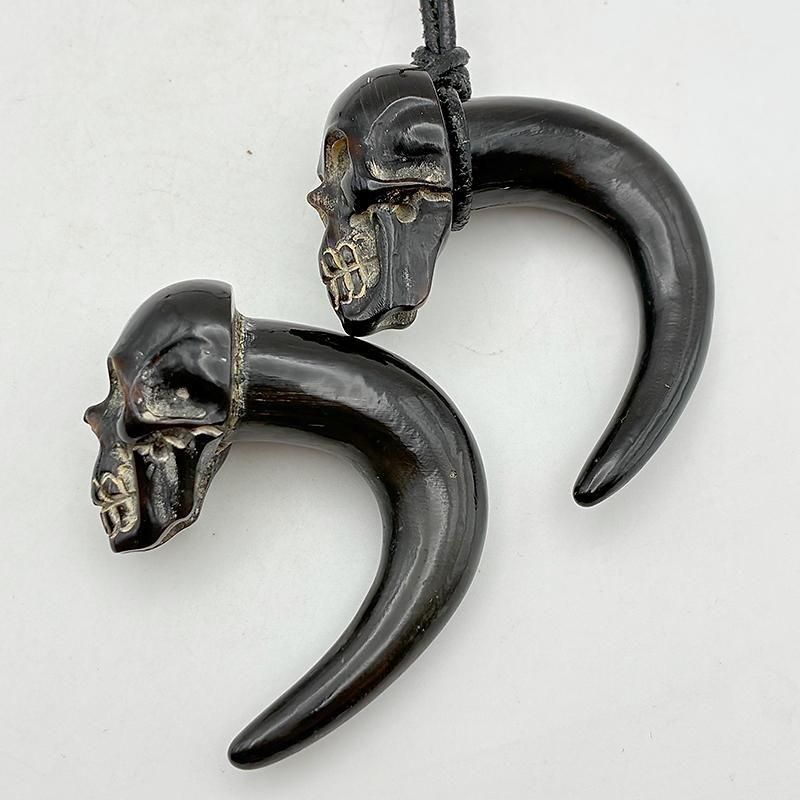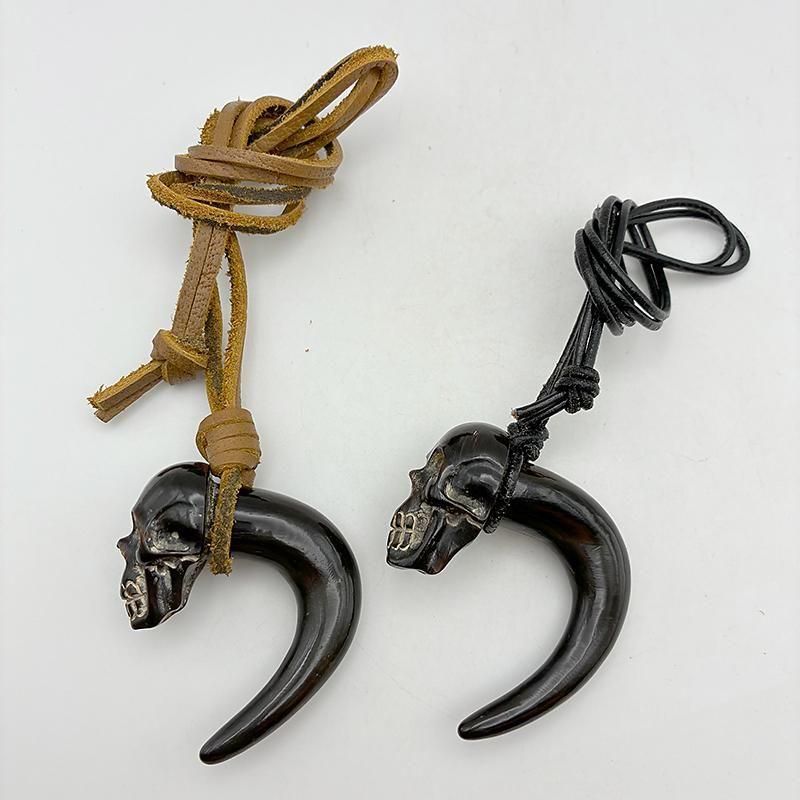 ドクロヘッドの動物の角を削って作った、チャームトップです。