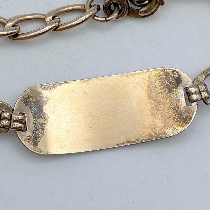 プレートに横長の喜平チェーンがセットされたブレスレット。