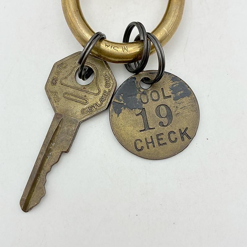 ブラススナップに車系のKEYと"19 TOOL CHECK" のナンバータブです。