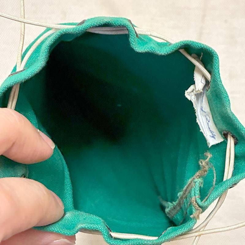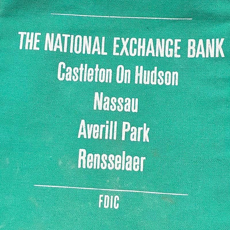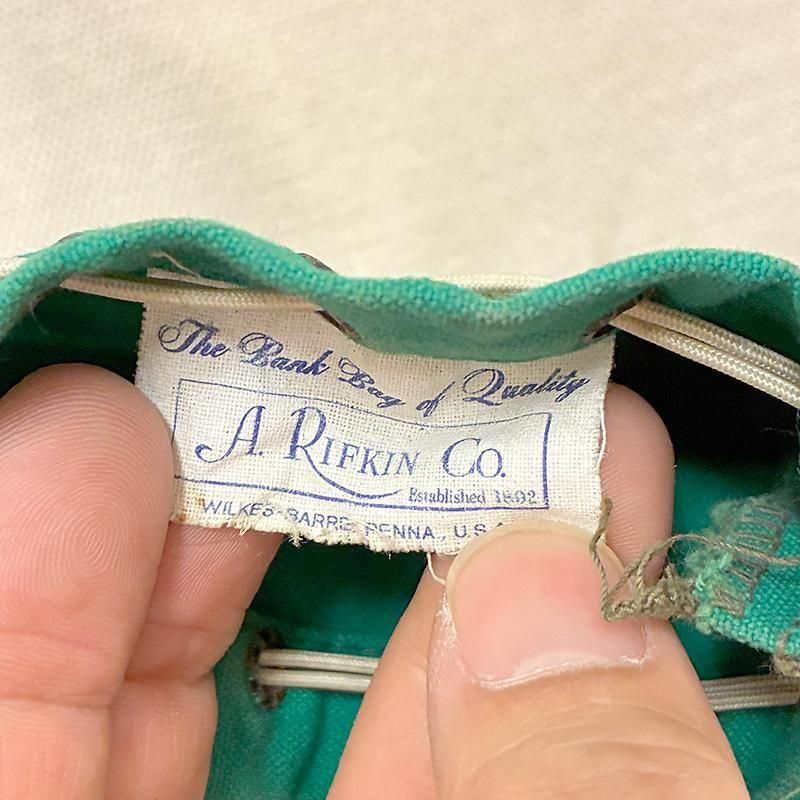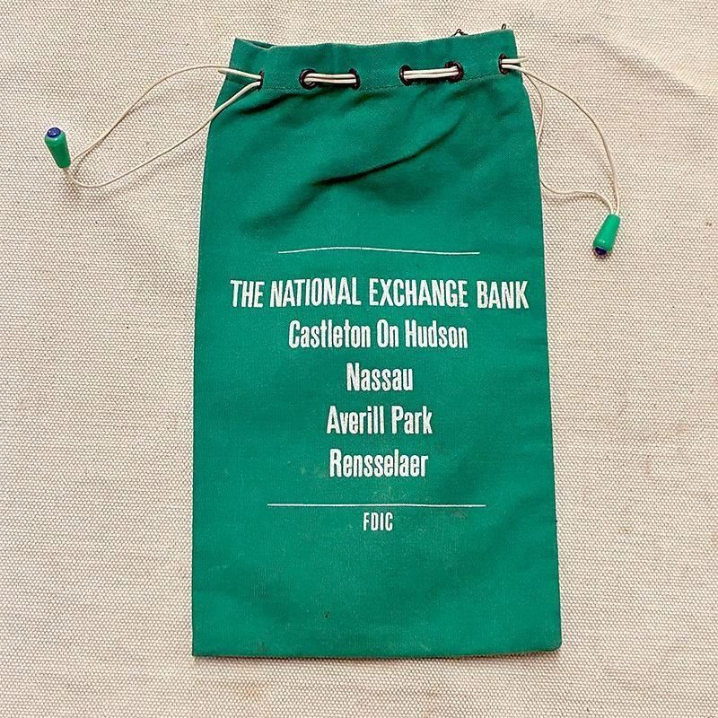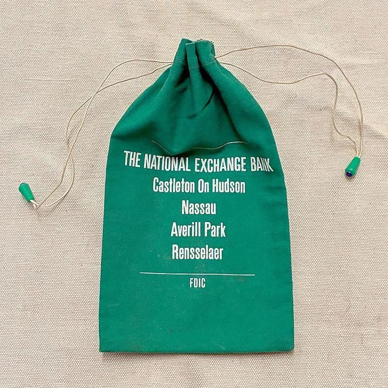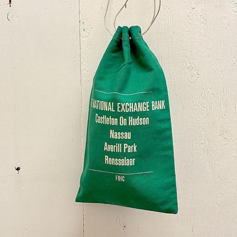 巾着型の "THE NATIONAL EXCHANGE BANK" バンクバッグ。
