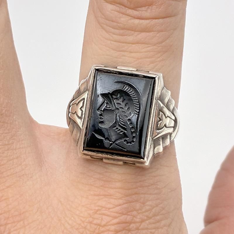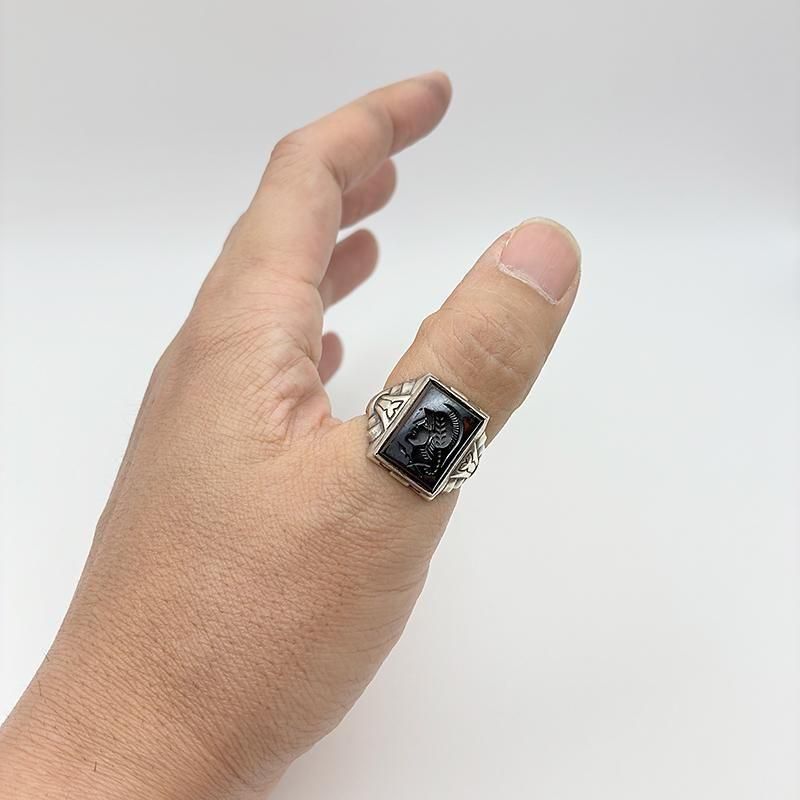 トップはオニキス、ローマンソルジャーがインタリオ/沈み彫りされています。