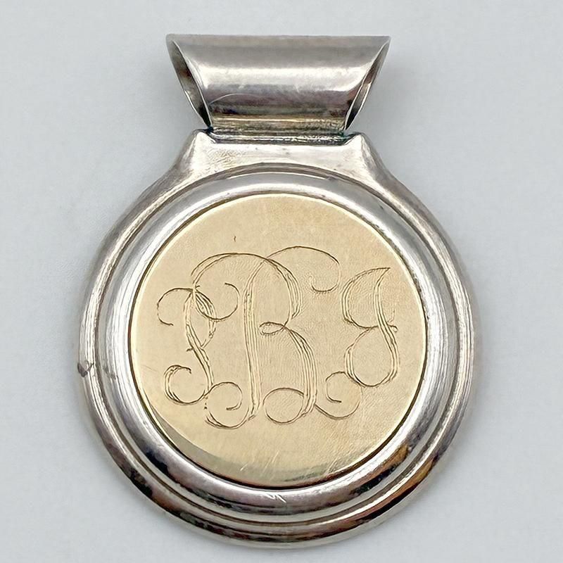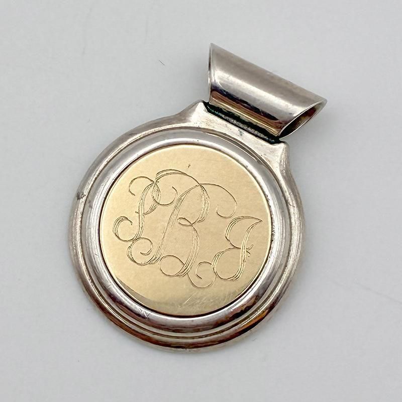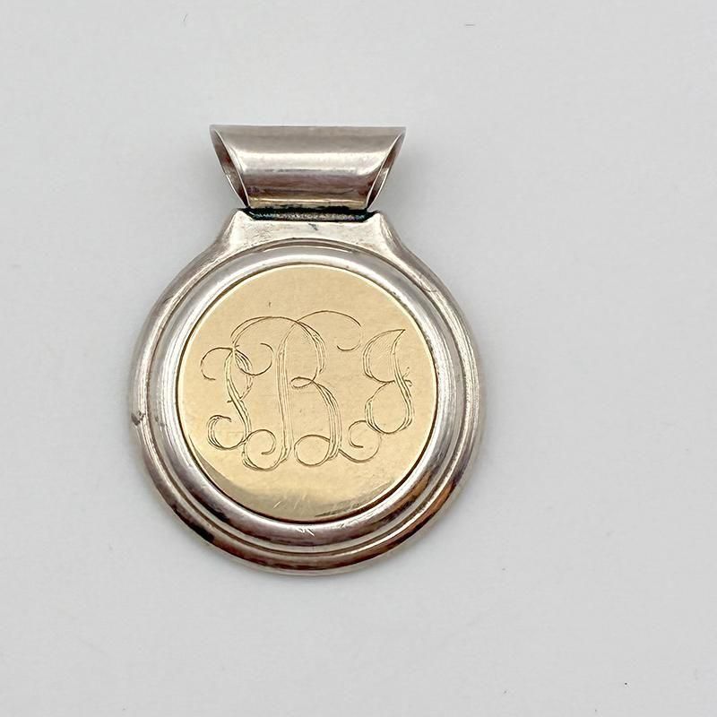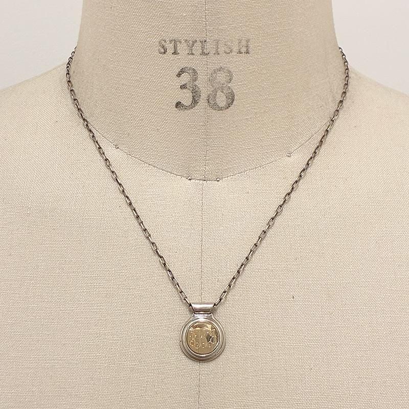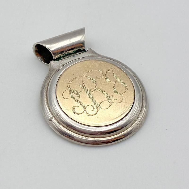 ラウンド型のSTERLING シルバー& 14K ゴールドのペンダントトップです。