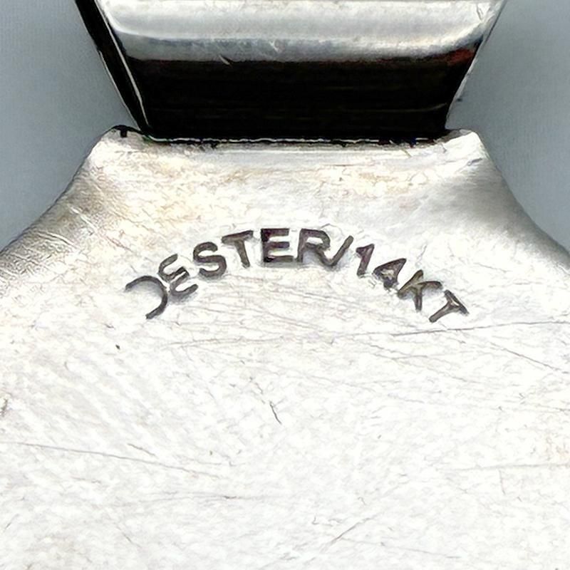 裏面にSTER/14KT の刻印です。ゴールド部分の彫刻では地金が見えていないため、薄いゴールドプレートがトップに付いているのだと思います。