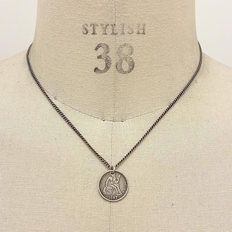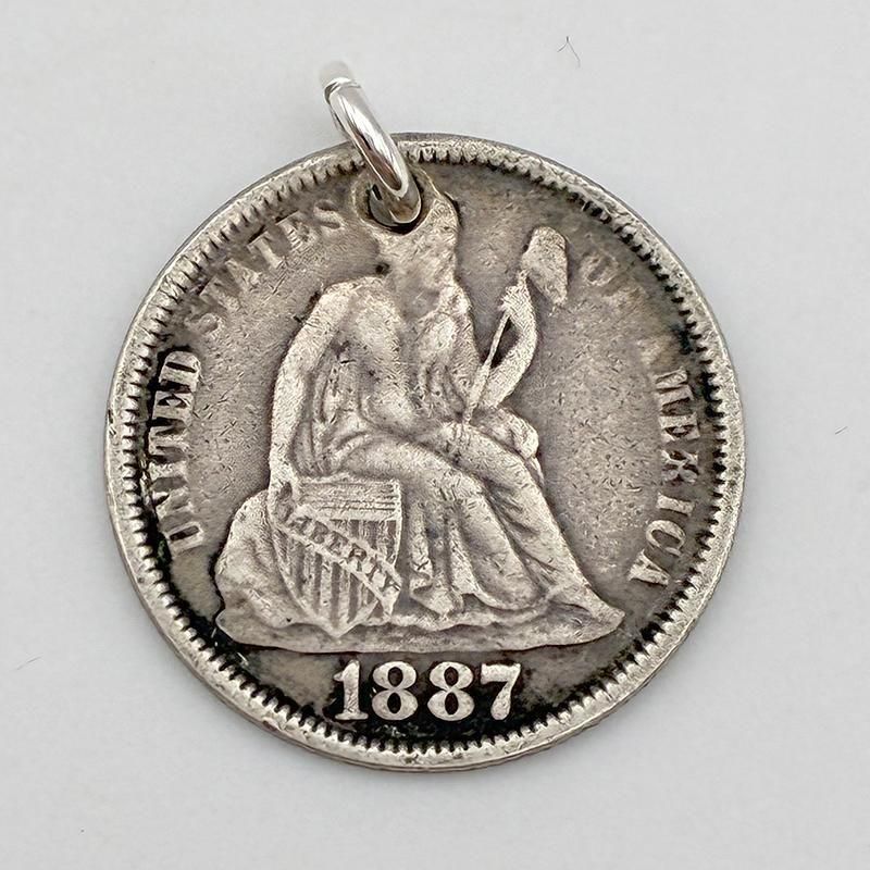 1887年のアメリカ1ダイムシルバーコインのペンダントトップです。