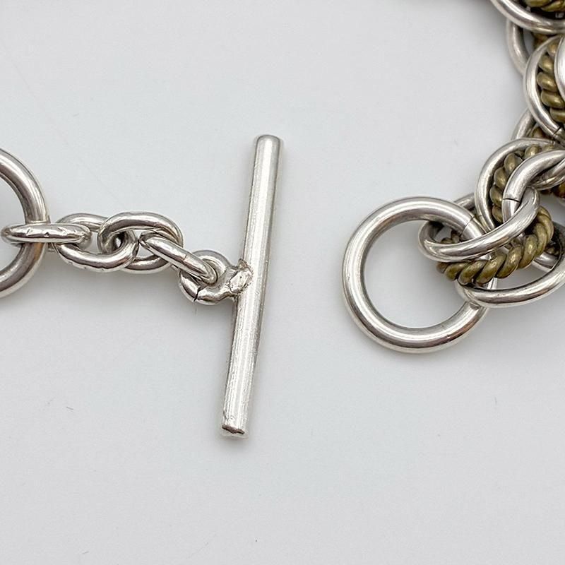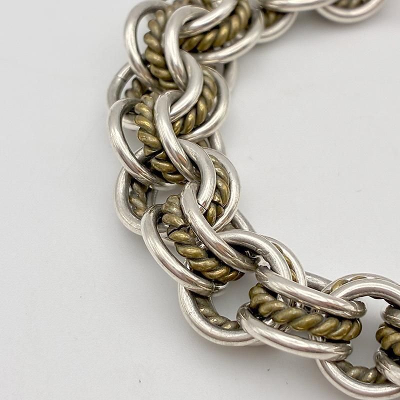 ロープ状のリングをプレーンのリングで挟んだ3連のコマが連なったチェーンデザインです。