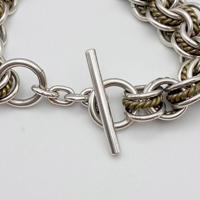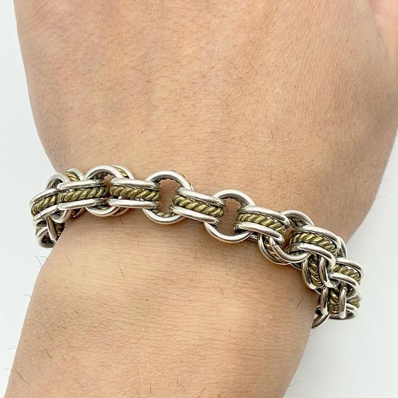しっかりとした縦幅があるツートンカラーブレスでインパクト大です。