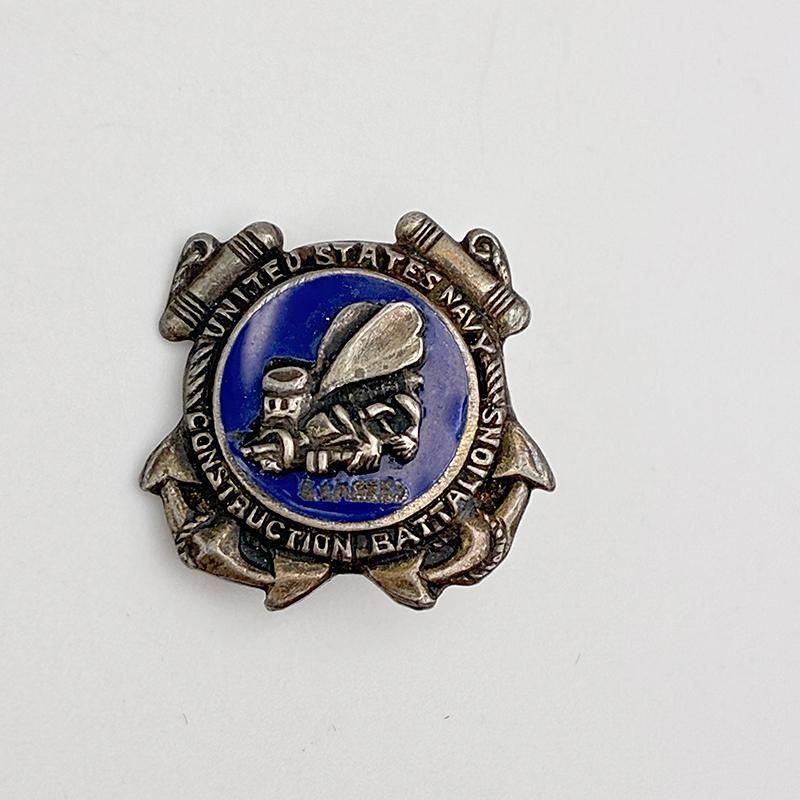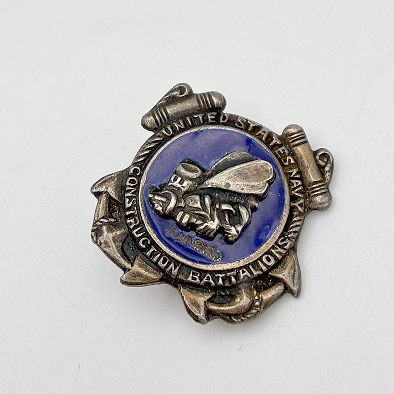 クロスアンカーベースに青い七宝焼、中央にSEABEESのインシグニアのデザインです。