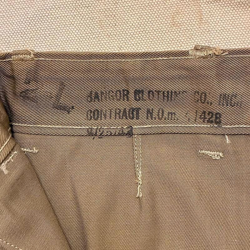 WW2 40年代頃のUSMC(米海兵隊)コットン・カーキチノパンツ、カッタータグの残ったデッドストック品です。
