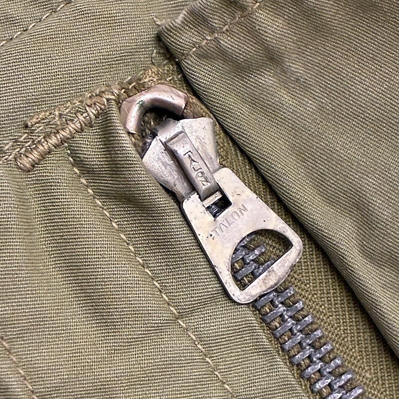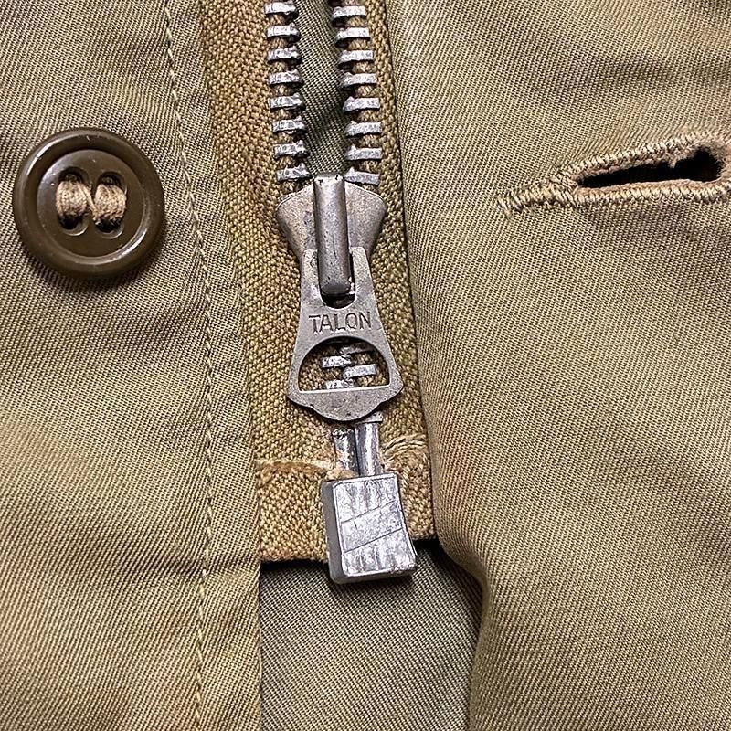 フロントはジッパー&ボタン留め。戦中型の鉄合金製TALONジッパーでスムーズです。