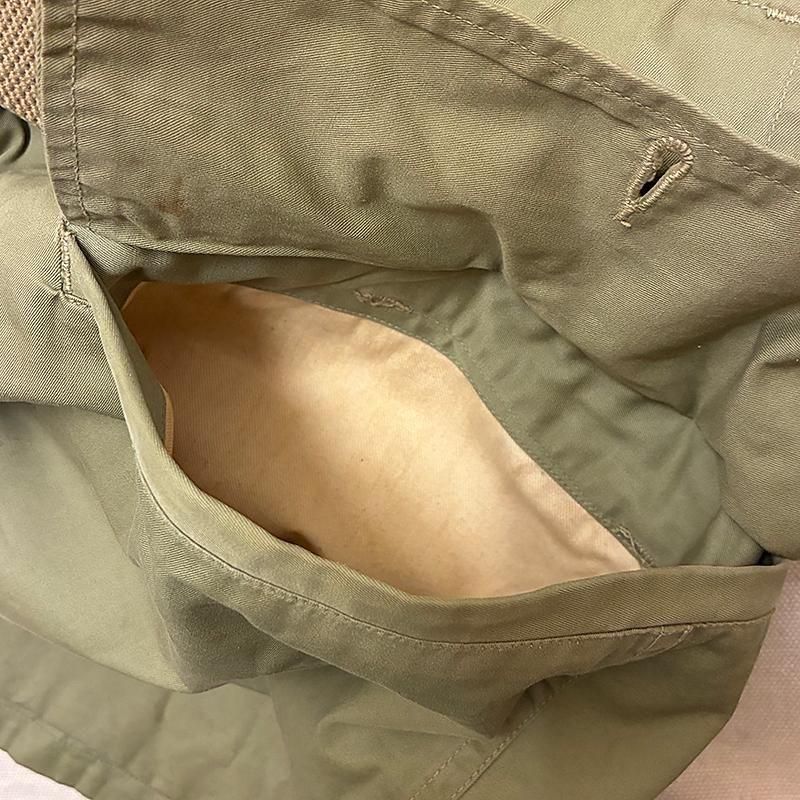 両腰にはフラップ付きボタン留めポケット。右ポケット内側のコントラクトラベルは欠損です。