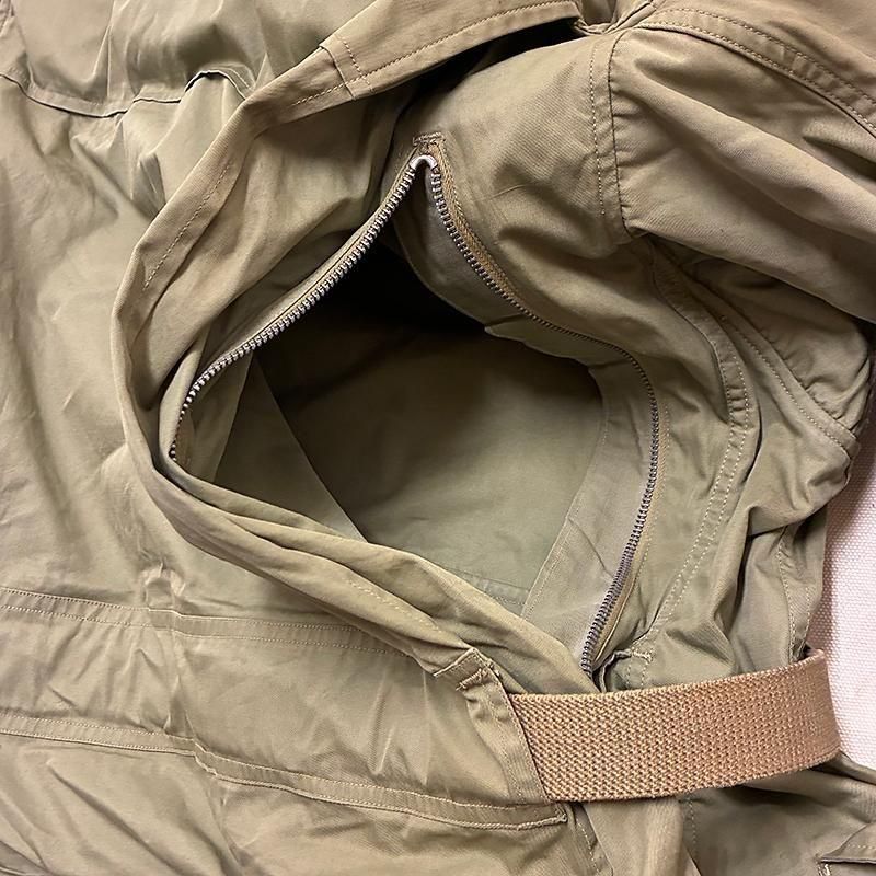 さらに背面にジッパー開閉式の大きなポケットが付きます。こちらはスキーパーカやポンチョ等のアウターを入れる事が想定されていた様です。こちらもジッパーはTALONです。