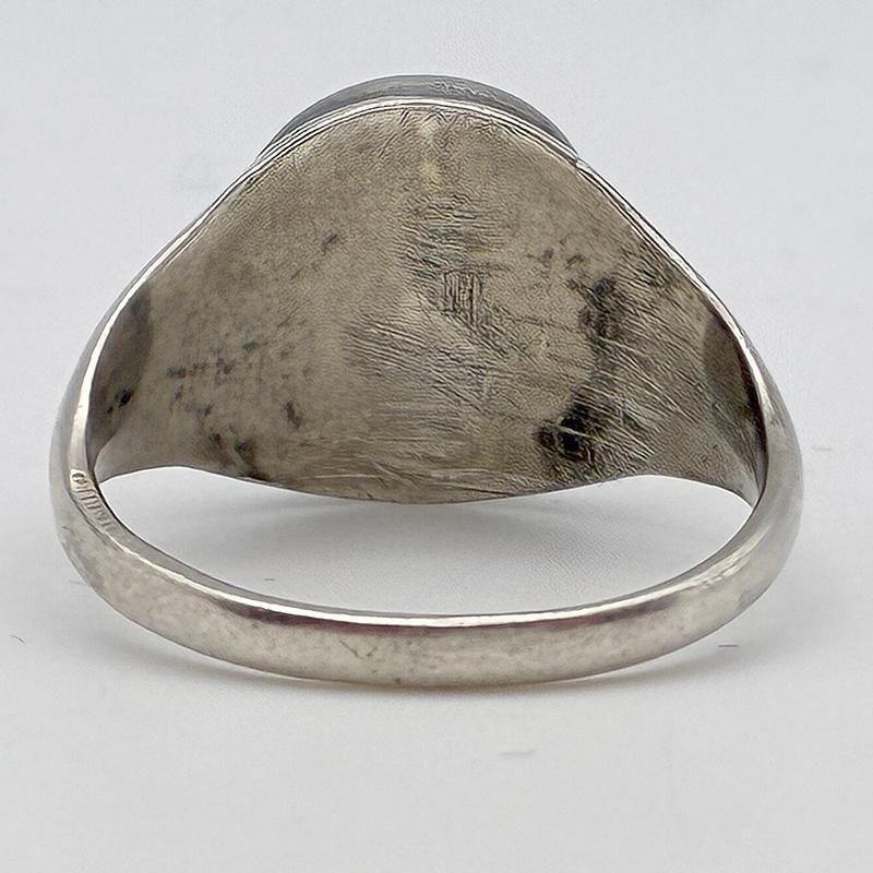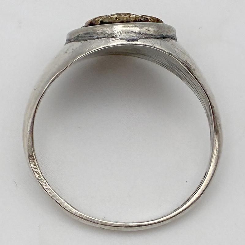 コントラストの効いた渋いミリタリーリング、サイドがプレーンですのですっきりとした印象です。