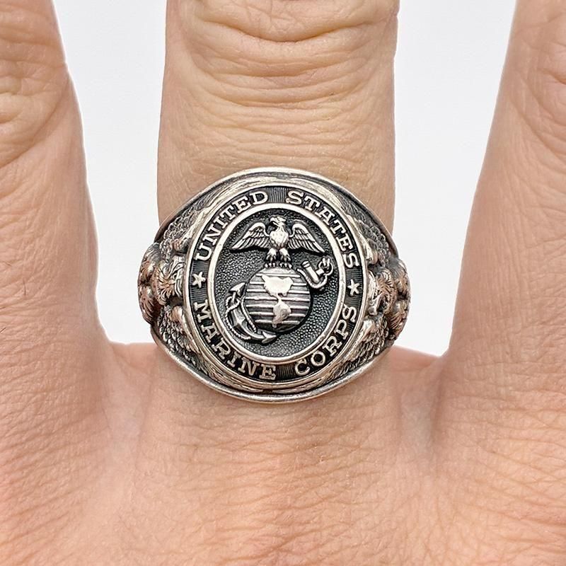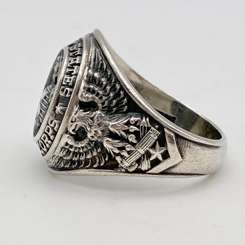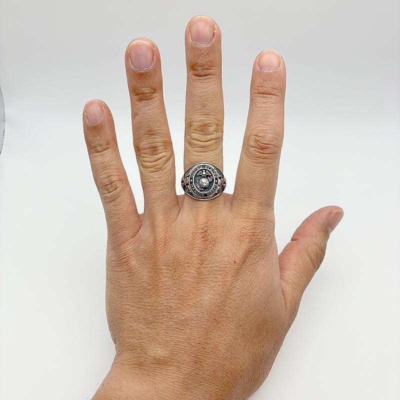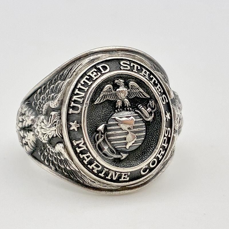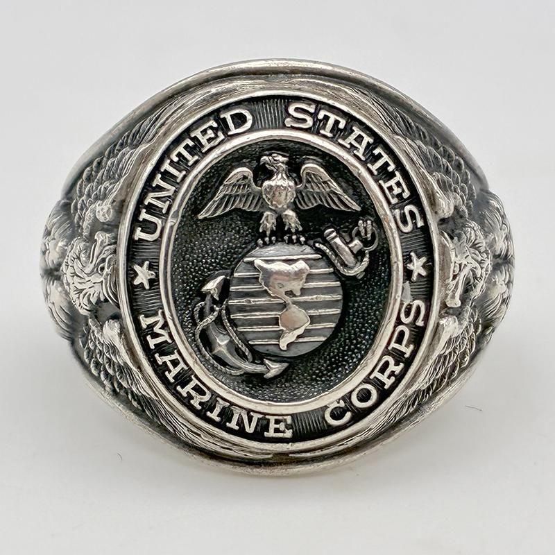 彫りの深いUSMCのミリタリーリングで男性らしい印象のリングです。