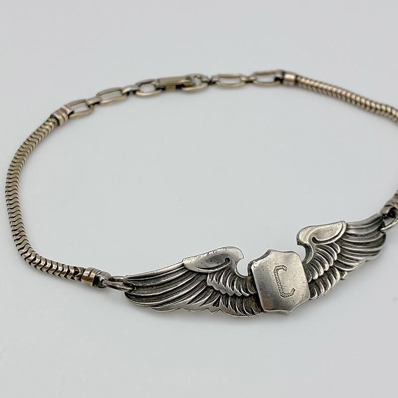Cの刻印が入ったパイロットウイング、ピンズを加工しおそらく持ち主のイニシャルを刻んだのだと思います。