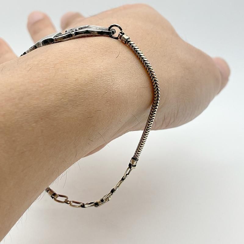 僅かに残る金張りゴールドカラーチェーンとエイジングで黒くなったシルバーウィングトップの組み合わせが雰囲気のある一点。