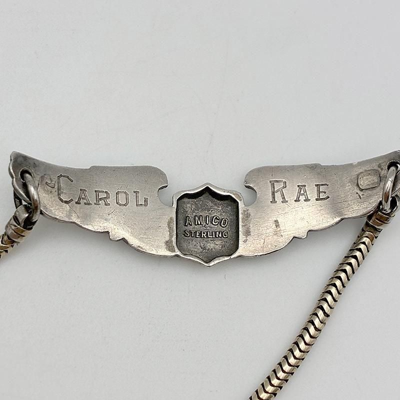 裏側にSTERLING刻印と軍納入メーカーである AMICO の刻印、ネーム CAROL RAE の彫刻があります。