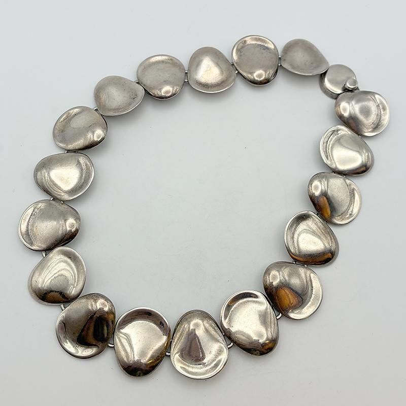 魚の鱗の様な大きなリングが連なったチェーンデザインです。