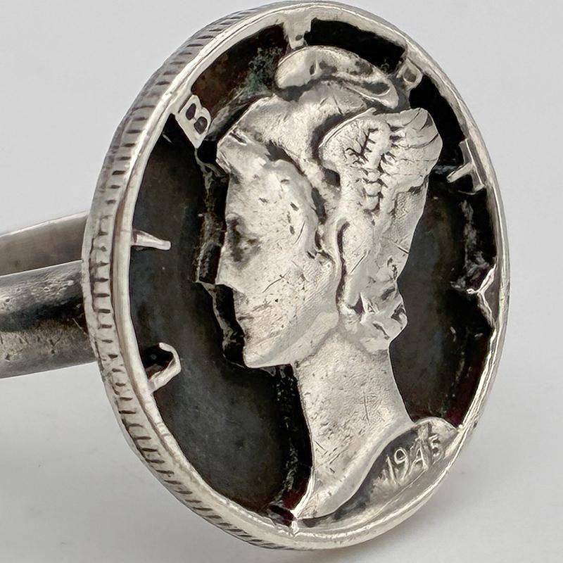 リング部、刻印は入っていませんがシルバー製になります。1DIMEコインはシルバー製です。