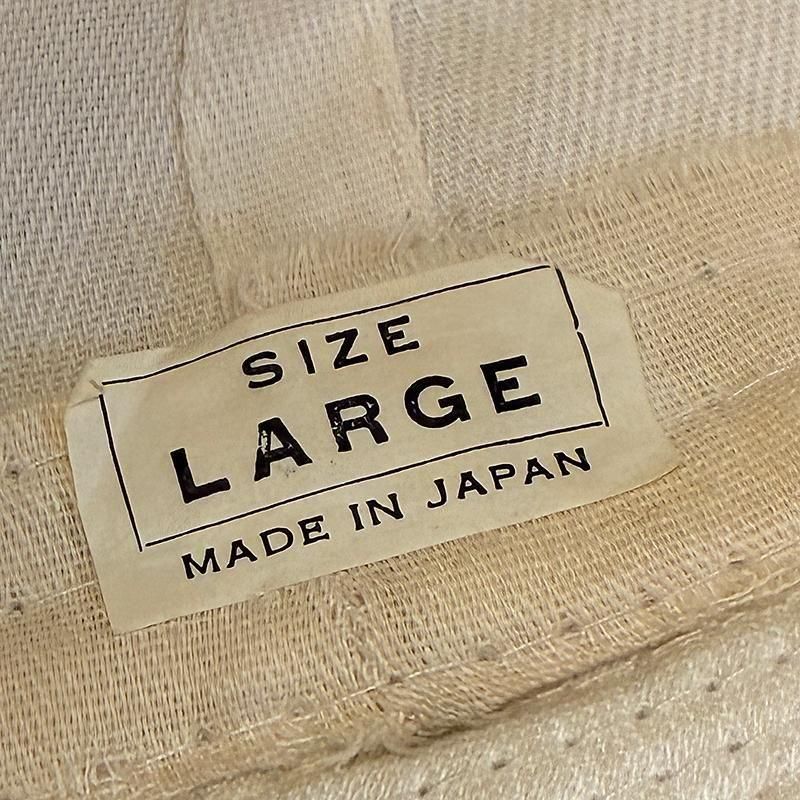 内側にサイズラベル残存、MADE IN JAPAN の表記があります。