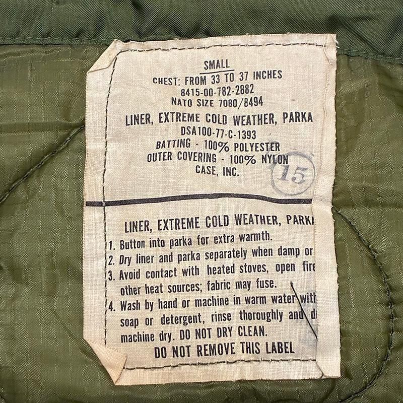 シェル、ライナー、フードのフルセットでメーカー、支給年度も別々になります。