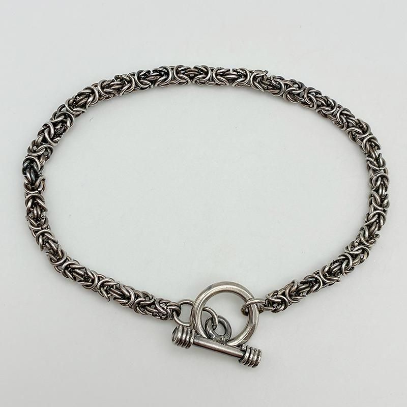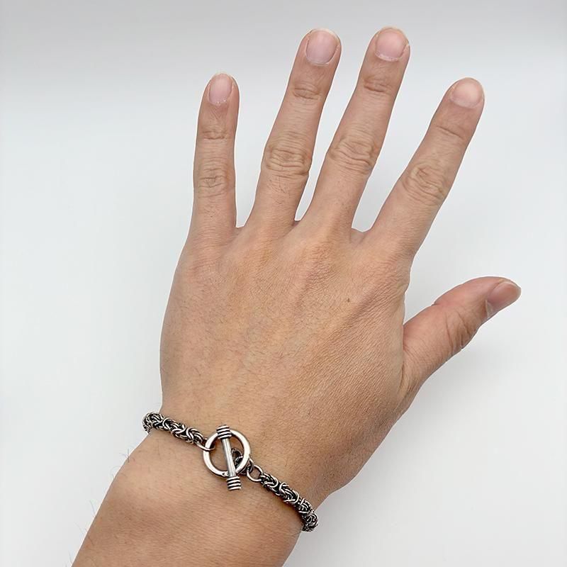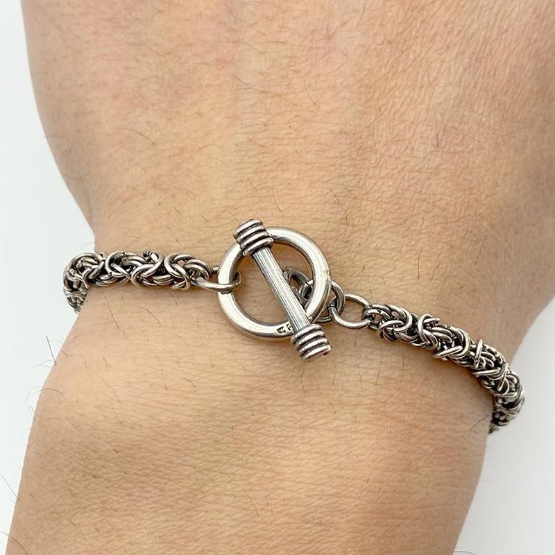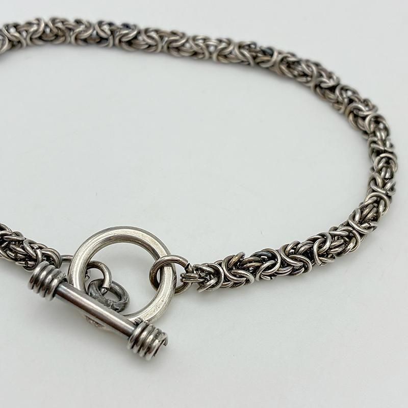 細めのビザンティンチェーンにトグルの組み合わせで使い勝手がよいビンテージブレスです。