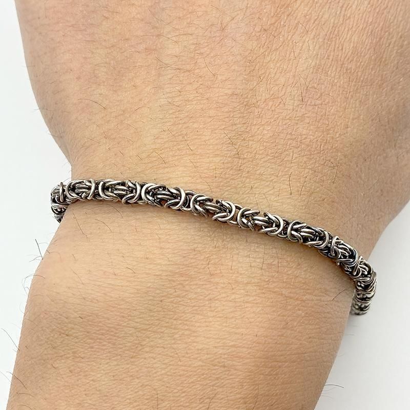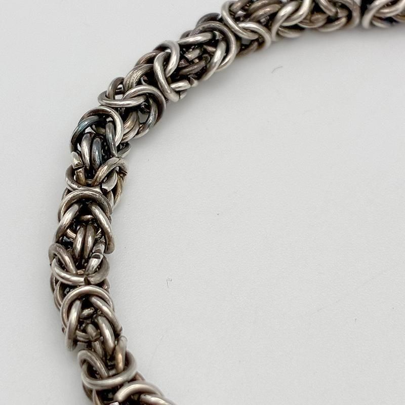 複雑に編み込まれたビザンティンチェーンのデザインです。