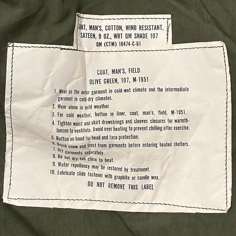 会計年度1961年の US ARMY M-51 フィールドジャケット。