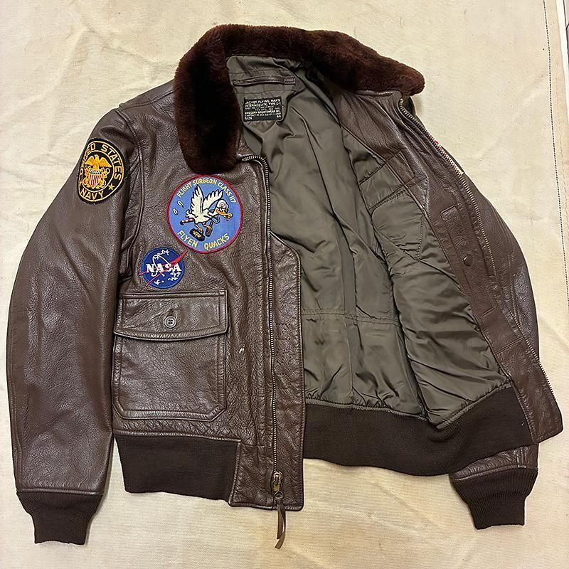 素晴らしいパッチデコレーションのUSN TYPE G-1 フライトジャケット。