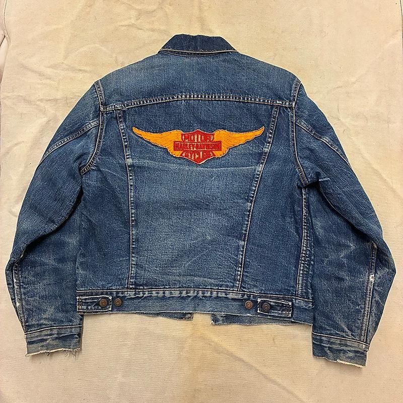 使い込まれたリーバイス4thの背中にハーレーパッチ、内側にはパンツのバックポケットで内ポケットカスタムが施された雰囲気抜群の1着です。