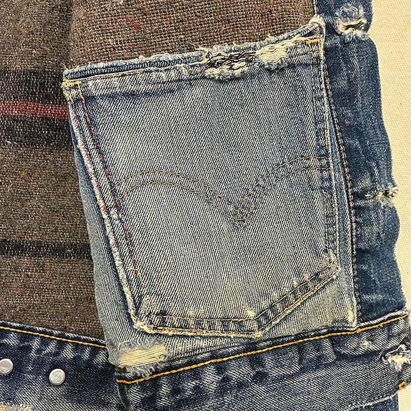 ブランケットライナーの左右には同じ年代くらいのデニムパンツを切って内ポケットカスタムがしてあります。